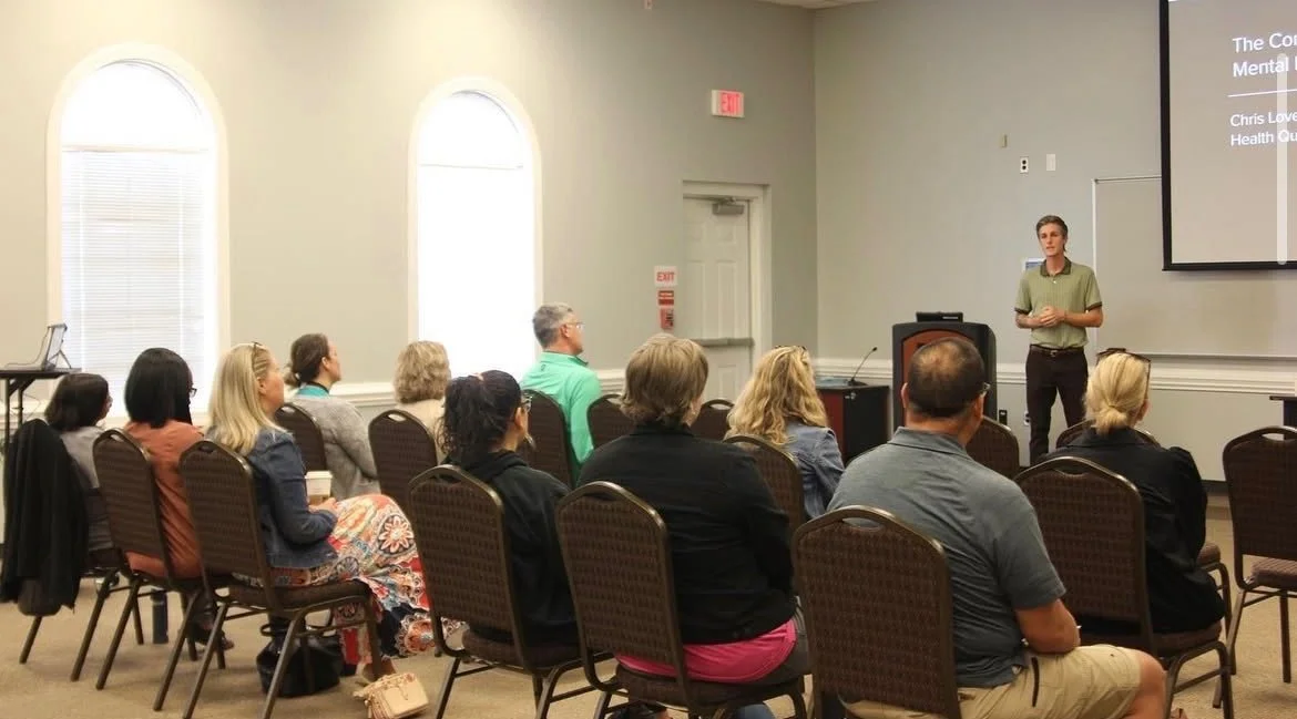 Chris presents at universities within the area on healthy communication tools, anxiety and depression in student populations, recovery options, and links between mental health disorders such as ADHD and addiction.